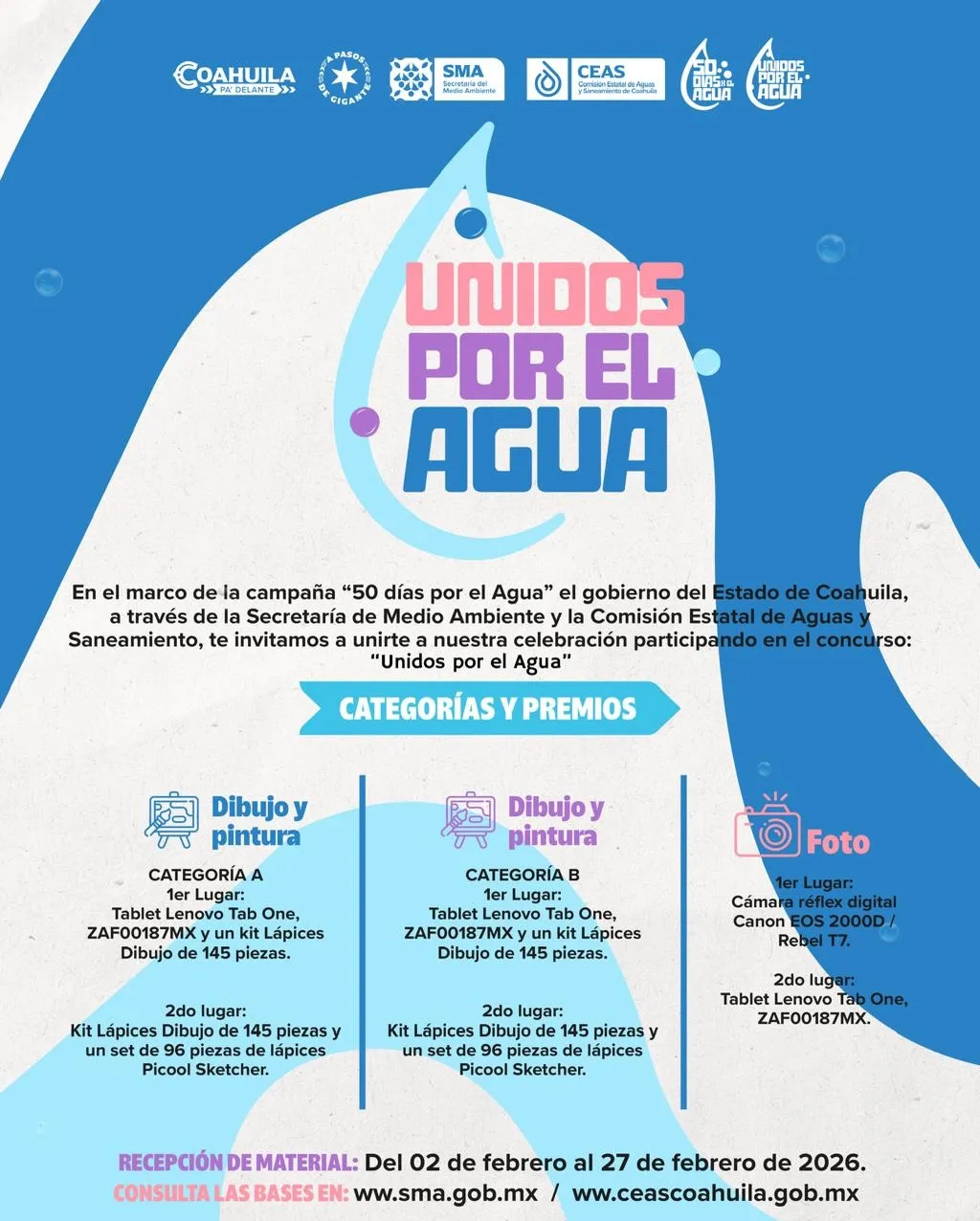 Atendiendo la instrucción del Lic. Toño Gutiérrez Jardón, nos sumamos a la campaña estatal “50 Días por el Agua”, promovida por el Gobierno del Estado de Coahuila, del 2 de febrero al 22 de marzo, en el marco del Día Mundial del Agua.
